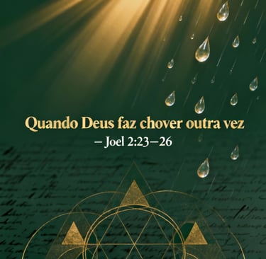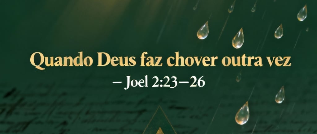 Uma reflexão devocional profunda sobre Joel 2:23–26, mostrando como Deus transforma cenários de ruína em ciclos de restauração. Este post explora a devastação enfrentada por Israel, a disciplina divina, o chamado ao arrependimento e a promessa da chuva temporã e serôdia. A mensagem revela que Deus não apenas devolve o que foi perdido, mas restitui até os anos consumidos, inaugurando novos recomeços espirituais. Um devocional para quem precisa de renovo e busca compreender o agir restaurador de Deus.